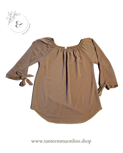 Boat neckline t-shirt with sleeve 3/4 long - brown - poliestere